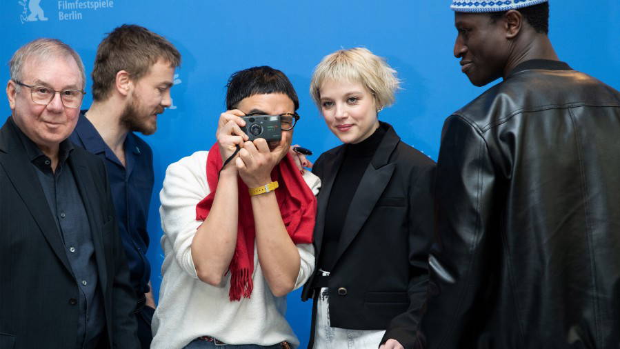 Filmin oyuncuları Joachim Krol, Albrecht Schuch, Jella Haase ve Welket Bungué, berlin Film Festivali sırasında yönetmen Burhan Qurbani (ortada) ile birlikte