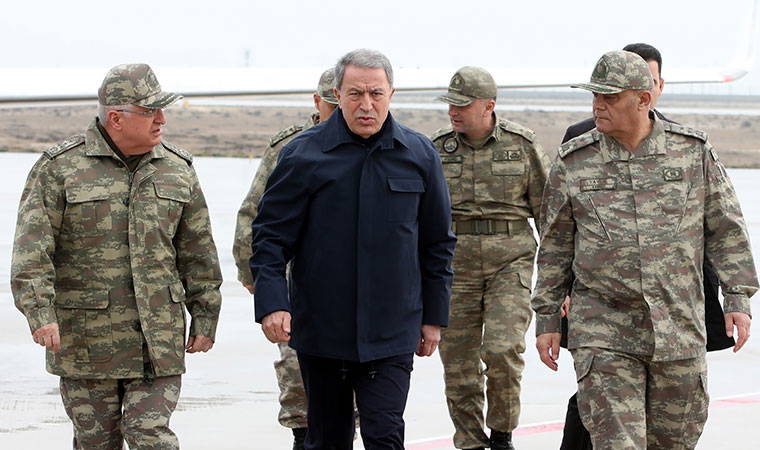 Hatay Havalimanı'nda 2. Ordu Komutanı Korgeneral Sinan Yayla ve diğer yetkililer tarafından karşılanan Akar ve komutanlar, Suriye sınır hattındaki birliklerde incelemelerde bulunuyor.