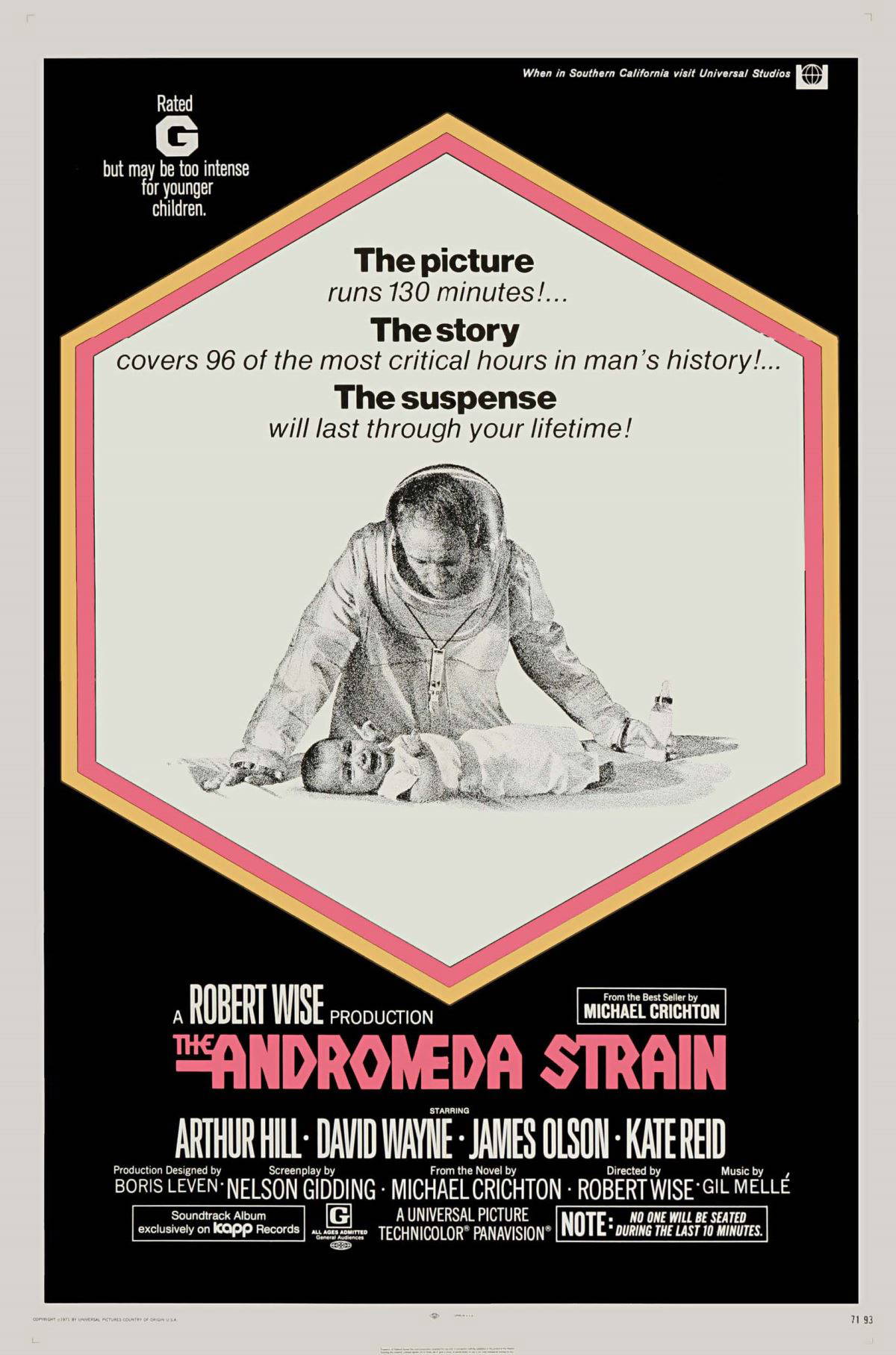 Bu kez virüs dünya dışından, yani uzaydan geliyor. Robert Wise imzalı "The Andromeda Strain" (ya da Türkçe adıyla "Uzay Mikrobu") Michael Crichton'ın aynı adlı romanından hareketle çekildi Arthur Hill, James Olson, Kate Reid, David Wayne ve Paule Kelly gibi oyuncuların rol aldığı film Amerikalılara ait bir uydunun Meksika'daki bir kırsal bölgeye düşmesiyle başlayan salgını konu ediniyor. Uyduyla birlikte dünyaya gelen esrarengiz bir virüsün sebep olduğu salgını kontrol almaya çalışmak da Dr. Jeremy Stone ve Dr. Mark Hall önderliğindeki bir ekibe düşüyor.
