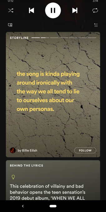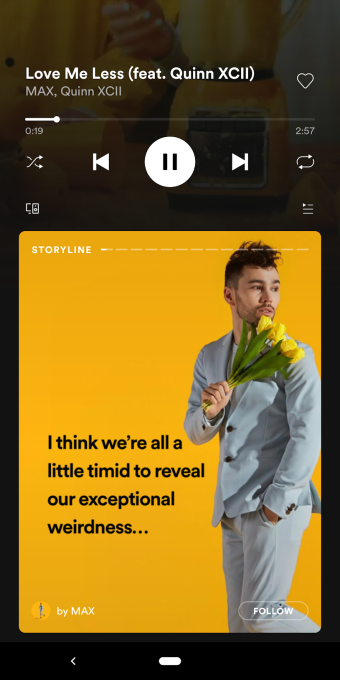 Spotify, Snapchat ve Instagram gibi sosyal uygulamalar tarafından popüler hale gelen ve Facebook , YouTube , WhatsApp ve diğer uygulamalarda yaygınlaşan 'Storyline' paylaşım özelliğini test ediyor.