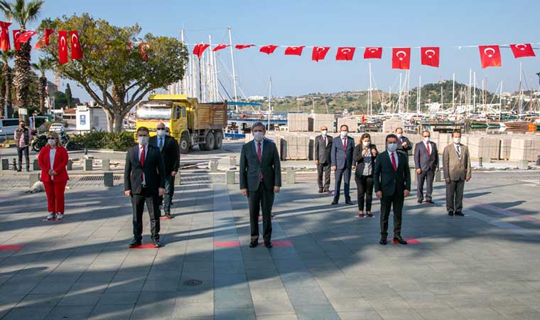 Bodrum İlçe Milli Eğitim Müdürlüğü tarafından düzenlenen törene Bodrum Kaymakamı Bekir Yılmaz, Bodrum Belediye Başkanı Ahmet Aras, Bodrum Belediye Başkan Yardımcısı Emel Çakaloğlu, İlçe Milli Eğitim Müdürü Aslan Korkmaz, siyasi parti temsilcileri, daire amirleri, çeşitli oda ve STK temsilcileri ile emniyet mensupları katıldı.
