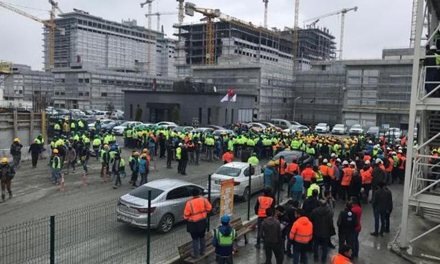 İstanbul İkitelli’de yapımı devam eden Başakşehir Şehir Hastanesi'nde çalışan yaklaşık 4 bin işçi şantiyede çıkan yemekleri ve kötü çalışma koşullarını protesto etmek amacıyla geçtiğimiz günlerde eylem başlattı.