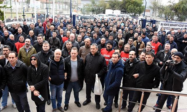İşveren ile sendika arasında görüşmeler sürerken, işçiler Alsancak Mahallesi Şehitler Caddesi’nde toplanarak, İZELMAN’a kadar yürüdü. Üzerinde ‘Bu kente beraber hizmet ediyoruz, bu emeği beraber büyütelim’ yazılı pankart da taşıyan işçiler, yol boyunca 'İş ekmek yoksa barış da yok', 'Sadaka değil toplu sözleşme' sloganları attı. İşçiler İZELMAN binası önünde beklerden, sendika yöneticileri ve işveren de masada, TİS’te yer alan maddeler üzerinde görüşmesini sürdürdü. Büyükşehir Belediyesi'nin ulaşım hizmetlerini yürüten ESHOT, İZSU, fen işleri, park bahçe, çevre sağlığı mezarlıklar dairesi, balık hali, sebze, aşevi huzurevi, otoparklar, katı atık dairesi, idari birimler, Eşrefpaşa Hastanesi gibi 17 farklı birimde çalışan işçileri kapsayan sözleşme görüşmesinin son oturumda da uzlaşmaya varılamadı. İşverenin yüzde 22.30 oranındaki ücret zammı talebine karşın, yüzde 35 zam isteyen sendika yetkilileri, toplantının ardından dışarıda bekleyen işçileri bilgilendirdi.