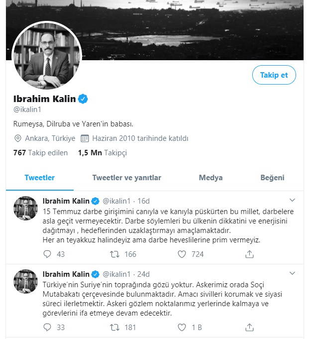 Cumhurbaşkanlığı Sözcüsü Kalın, İdlib'deki gelişmeler ve darbe iddiaları ile ilgili sosyal paylaşım sitesi Twitter'daki hesabından açıklamalarda bulundu.