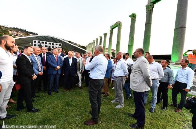 İzmir Büyükşehir Belediyesi Meclisi’nin Ağustos ayı ikinci birleşimi, kent tarihinde önemli bir yeri olan Agora’da yapıldı. Tarihi toplantıyı yöneten İzmir Büyükşehir Belediye Başkanı Tunç Soyer, kentin kültürel değerlerinin gün yüzüne çıkarılması için ellerinden gelen çabayı göstereceklerini belirterek, “Smyrna Antik Tiyatrosu kazılarının hızlanması için de Meclis’e bir önerge getirmiştik. Karar komisyonumuzdan çıktıktan sonra çalışmaları hızlandırarak, Smyrna Antık Tiyatrosu’nun da ortaya çıkarılmasını sağlayacağız. Toplandığımız bu noktayı hep beraber hissetmemizi istiyorum. Agora ve antik tiyatro bu kentin kimliğine ve kimliğinin bilinirliğine çok büyük katkı yapacak” diye konuştu.
