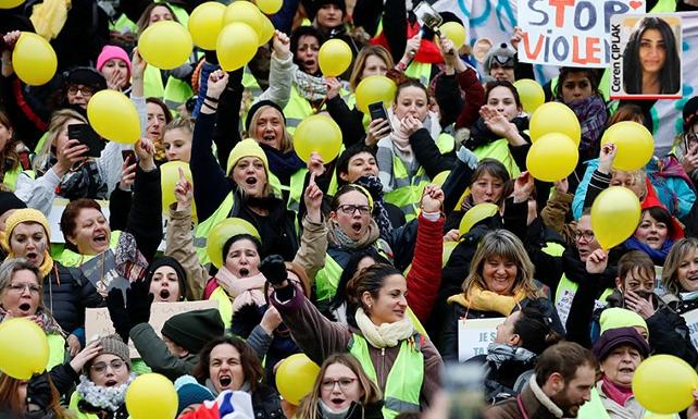 Akaryakıttaki fiyat artışını protesto etmekle başlayıp Fransa Cumhurbaşkanı Emmanuel Macron’un istifası talebine evrilen ve tüm dünyada yankı bulan çatışmalı Sarı Yelekliler eylemlerinde yeni bir oluşum ortaya çıktı. “Sekizinci perde”nin hemen ardından yüzlerce Sarı Yelekli kadın, geçen pazar günü, Fransa’nın birçok şehrinde aynı zamanda meydanlara çıktı. “Sarı Yelekli Kadınlar” başlığı altında sosyal medyada örgütlenen kadınlar Paris’te Bastille Meydanı’nda toplandı. Sarı balonlar eşliğinde Fransa’nın ulusal marşını söyledi. Ardından Cumhuriyet Meydanı’na yürüdü.