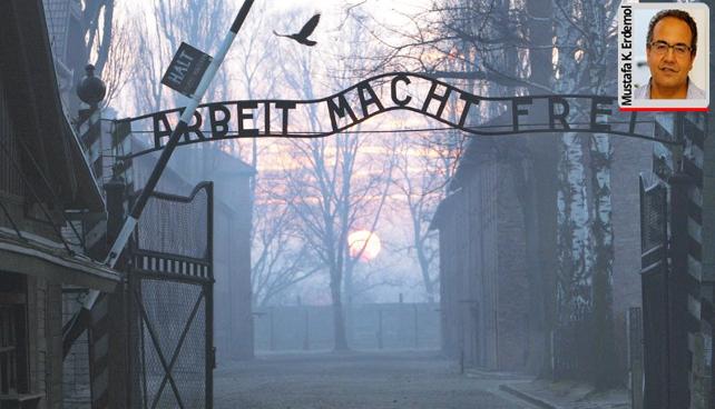 “Auschwitz I” ana kampının girişinde “Arbeit macht frei” (İş seni özgür kılar) yazan bir tabela vardı. Bu tabela “Stammlager” (Ana Kamp) yazısıyla değiştirilmiş. Çünkü buradaki gerçek tabela Aralık 2009’da İsveçli bir Neo-Nazi tarafından çalınmış. Bu nedenle sahte bir tabela koymuşlar. Neo-Nazi’nin şu cüretine bakar mısınız?