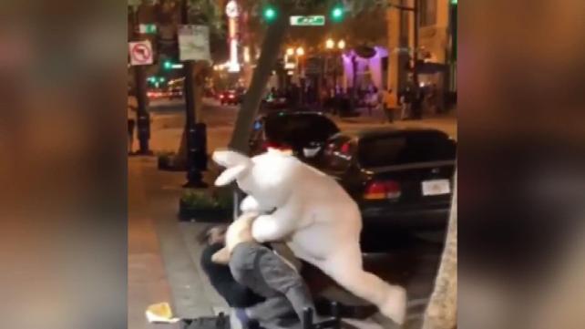 ABD’de bir bar çıkışı bir kadın ile adamın kavgasını ayırmaya çalışan ‘paskalya tavşanı’ kostümlü adam, bunu başaramayınca kavga eden adamı yumrukladı. Kavga polisin gelmesi ile son bulurken, video kısa sürede günün en çok izlenenleri arasına girdi.