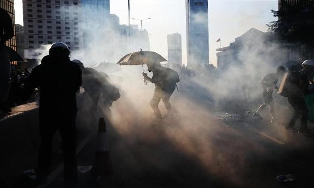Hong Kong polisi şehrin farklı bölgelerinde grev yapan göstericilere göz yaşartıcı gazla müdahale etti.