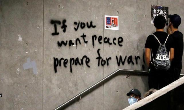 Reuters- Hong Kong'da duvarda yazılı bir grafiti: "Eğer barış istiyorsanız, savaşa hazırlanın"