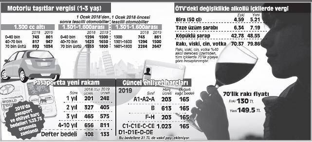 Yurttaş 2019’a cep telefonundan, alkollü içkiye, ehliyetten pasaporta, motorlu taşıtlar vergisinden mavi karta, aile cüzdanından arabulucu tarifesine kadar herşeye zamlarla başladı.