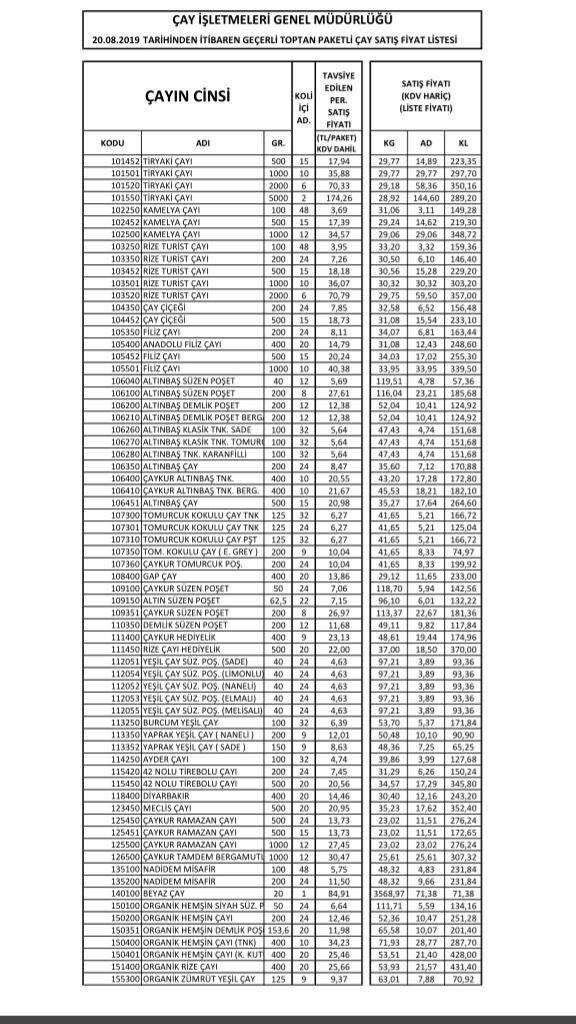 ÇAYKUR yetkililerinden alınan bilgiye göre çaya zam geldi. Yüzde 15'lik zam bugünden itibaren geçerli olacak. 500 gr Tiryaki çayın paketli tavsiye edilen perakende satış fiyatı 17.94 TL olarak belirlendi. 1 kilogram turist çayının tavsiye edilen perakende satış fiyatı 36.07 TL oldu.