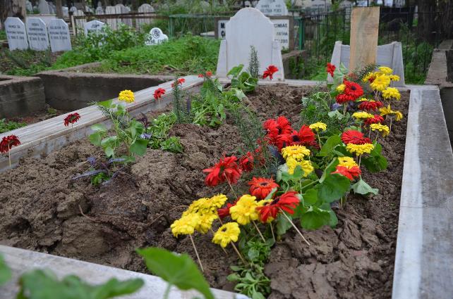 Bu arada Talat Terim’in mezarının sarı ve kırmızı çiçeklerle donatıldığı görüldü. Bazı vatandaşlar, sarı ve kırmızı renkli çelengin de yakınlarında bulunduğu Talat Terim’in mezarının başında dua etti.