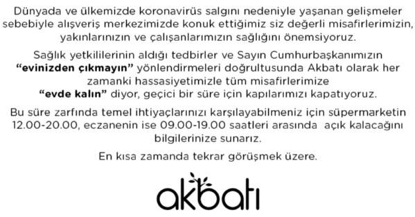 İstanbul'da bulunan Akasya, Akbatı, Akmerkez ve Armada salgını nedeniyle yönetim olarak geçici bir süre kapatma kararı aldı.