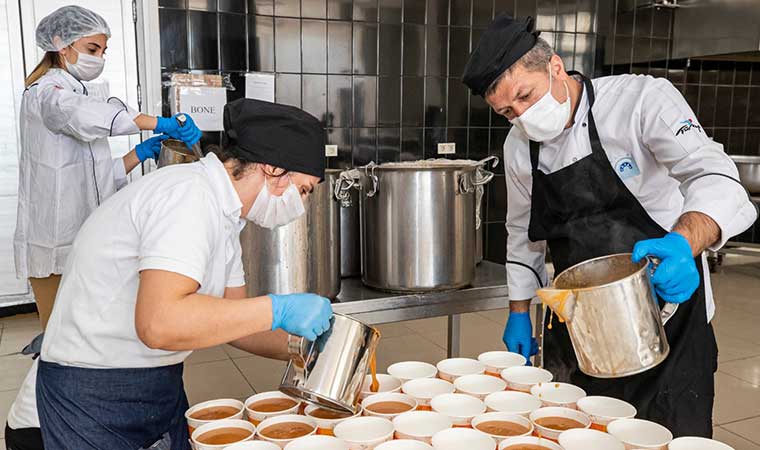 Başkan Tunç Soyer sözlerine şöyle devam etti: “İki kişilik iftar menüleri hazırladık. Böylece 50 tane sipariş veriyorsanız, 100 kişi için iftar sofrası kurmuş oluyorsunuz. Ramazan ayı da böylece bereketi ile gelmiş olur ve büyür diye düşünüyoruz. O nedenle tüm İzmirlileri ihtiyaç sahibi vatandaşlar için iftar sofrası kurmaya davet ediyoruz” dedi.