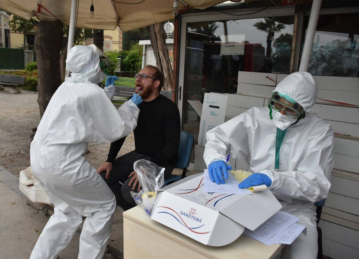 Dün öğlen saatlerinde İl Sağlık Müdürlüğü'ne bağlı oldukları öğrenilen iki sağlık çalışanı, Karşıyaka İskele ve Osmanbey Parkı'nda vatandaşlara koronavirüs testi yaptı. Sosyal medyaya da düşen görüntülerde sağlık çalışanlarının, sıraya giren vatandaşlarla tek tek ilgilendiği ve vatandaşların boğazları ile burunlarından örnek aldıkları, örnekleri deney tüplerine koydukları görüldü. Görüntülerin sosyal medyada yayılmasının ardından bölgede bulunan vatandaşların test yapılan noktaya gittikleri ve ekiplerin de gün boyunca yüze yakın koronavirüs testi yaptığı öğrenildi.