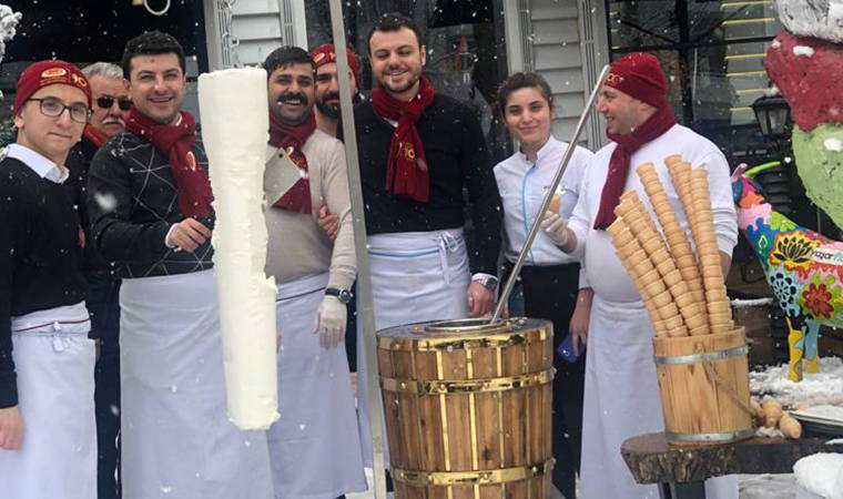 Maraş dondurmasını dünyaya tanıtan Mado'nun üçüncü kuşak dondurmacısı olan Yaşar ve Koray kardeşler kar altında dondurma şovu yaptılar.