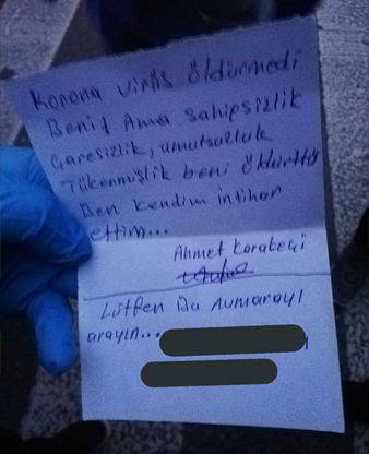 Ekonomik durumu kötü olan ve son günlerde büyük sıkıntı çektiği belirtilen Ahmet Karakeçi adlı yurttaş, “Koronavirüs öldürmedi beni ama sahipsizlik, çaresizlik, umutsuzluk öldürdü” notunu bırakarak yaşamını sonlandırdı.