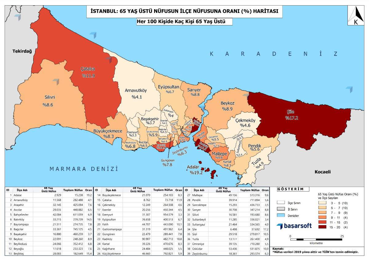 Araştırmaya göre dışarı çıkamayan 65 yaş üstü insanların en fazla olduğu il, Türkiye’nin de nüfus olarak en kalabalık olan ili İstanbul’da görülüyor. Türkiye İstatistik Kurumu’nun (TÜİK) açıkladığı son verilere göre 15 milyon 519 bin 267 kişilik nüfusa sahip İstanbul’da 1 milyon 79 bin 196 kişi 65 yaşın üstünde ve şu anda dışarıya çıkamıyor.