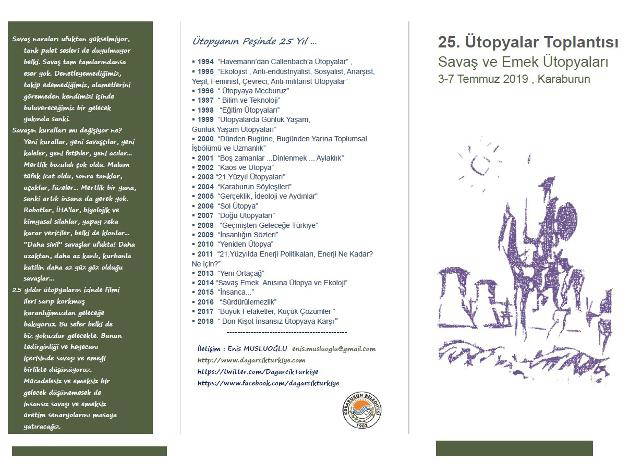25 yıldır u¨topyaların izinde filmi ileri sarıp korkmus¸ karanlıgˆımızdan gelecegˆe bakıyoruz. Bu sefer belki de biz yokuzdur gelecekte. Bunun tedirginligˆi ve heyecanı ic¸erisinde savas¸ı ve emegˆi birlikte du¨s¸u¨nu¨yoruz. Mu¨cadelesiz ve emeksiz bir gelecek du¨s¸u¨nemesek de insansız savas¸ı ve emeksiz u¨retim senaryolarını masaya yatıracagˆız.