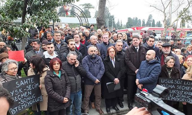 CHP Üsküdar İlçe Başkanlığı, Üsküdar'daki seçmen listelerine itiraz etti. Yaklaşık 100 kişilik grup Üsküdar'daki Selimiye Parkı'na gelerek eylem yaptı. Parti üyesi avukat Ümit Isıgöllü, "Üsküdar'da bir hukuksuzluk yaşıyoruz. Üsküdar, 400 bin seçmeniyle il boyutlu bir ilçe. Üsküdar'da oturan insan, kendi belediye başkanını, kendi belediye meclis üyesini, kendi muhtarını seçsin, diye bu süreç var. O süreci Cumhuriyet Halk Partisi çok kuvvetli bir çalışmayla değerlendirdi ve 7 bin seçmenin burada yaşamadığını, öldüğünü ya da göçtüğünü tespit etti" dedi.