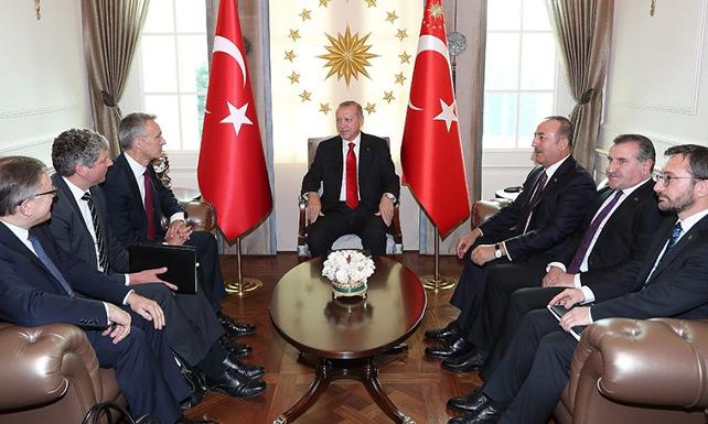 Cumhurbaşkanı Erdoğan, NATO Konseyi ve NATO Akdeniz Diyaloğu Ortakları Toplantısı için Çankaya Köşkü'ne gelen NATO Genel Sekreteri Jens Stoltenberg'i kabul etti. Görüşmede, Dışişleri Bakanı Mevlüt Çavuşoğlu ve Cumhurbaşkanlığı İletişim Başkanı Fahrettin Altun da yer aldı. Görüşmede Suriye'de oluşturulması planlanan güvenli bölge ve S-400 konuları ele alındı.