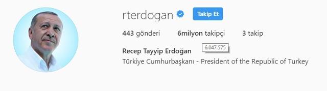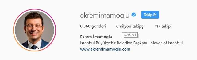 Cumhurbaşkanı Erdoğan’ın Instagram’da 6 milyon 47 bin takipçisi varken, Ekrem İmamoğlu’nun 6 milyon 58 bin takipçisi olduğu görüldü.