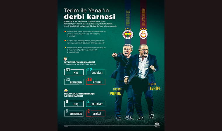 Bu hafta oynanacak Fenerbahçe - Galatasaray derbisinde gözler iki takımın teknik adamlarında olacak. Galatasaray Teknik Direktörü Fatih Terim ile Fenerbahçe Teknik Direktörü Ersun Yanal, bugüne kadar 12 kez rakip oldu. İki takım çalıştırıcısı arasındaki rekabet 4 Eylül 1996 yılında oynanan Galatasaray (Fatih Terim) - Denizlispor (Ersun Yanal) müsabakası ile başladı. Bu karşılaşmayı Terim’in öğrencileri 2-0 kazandı.