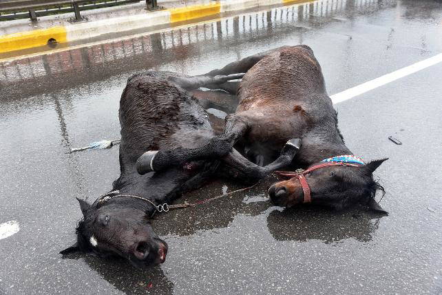 Olayı görenlerden Sefa Aktun, "Yolda yaralı atları görünce hemen durdum. Çeşitli kurumları arayıp yardım istedim. İnşallah bir şey olmaz" dedi.