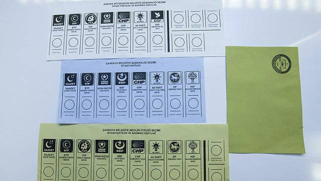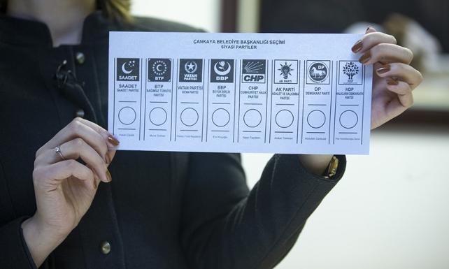Büyükşehir belediye başkanlığı seçimi için kullanılacak oy pusulası "beyaz", büyükşehir olmayan illerde "turuncu", ilçe belediyesi için hazırlanan oy pusulası "mavi", belediye meclis üyeliği için kullanılacak oy pusulası ise "sarı" renkte olacak.