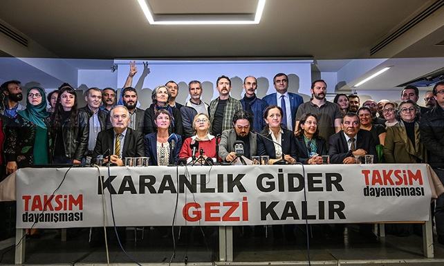 Taksim Dayanışması adına açıklama yapan yüksek mimar Mücella Yapıcı, “Gezi’yi lekelemeye yönelik beyhude ‘anlamsız’ çabalarınızı reddediyoruz! Çünkü Gezi’yi biz yaşadık, biliyoruz. Gezi bu toprakların, özgürlük ve adalet umududur” açıklamasında bulundu. Gezi’nin ülkenin en parlak ve onurlu sayfası olduğunu belirten Yapıcı, “Gezi sürecine dair asıl hesap vermesi gerekenler, iddianamede davacı ve mağdur sıfatları ile yer almaktadır. Onlarca arkadaşımızın ölümüne, onlarcasının gözünü kaybetmesine ve yaralanmasına neden olanlar, polislere bu emri verenler, şiddeti koruyup kollayanlardır” dedi. TMMOB Genel Başkanı Emin Koramaz, “Gezi doğrudan demokrasiye olan inancımızın bir parçasıdır” dedi.