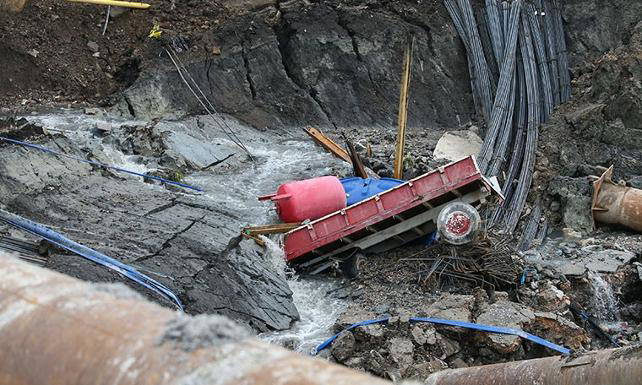İzmir Büyükşehir Belediyesi metro yer altı park istasyonu inşaatında meydana gelen göçükte, enkaz altında kaldıkları sanılan bekçiler Mehmet Çiftçi ile Mehmet Ali Yalçın'ı kurtarmak için çalışmaların gece de devam edeceği belirtildi.