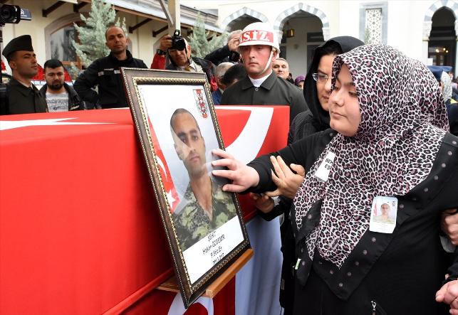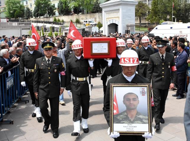 Şehidin eşi Aslı, annesi Zehra ve babası Alaaddin Özdemir ile aile yakınları, tabuta sarılarak gözyaşı döktü. Burada fenalaşan şehit yakınlarına sağlık ekipleri müdahale etti. Alaaddin Özdemir, şehit oğlunun kepini taktı.