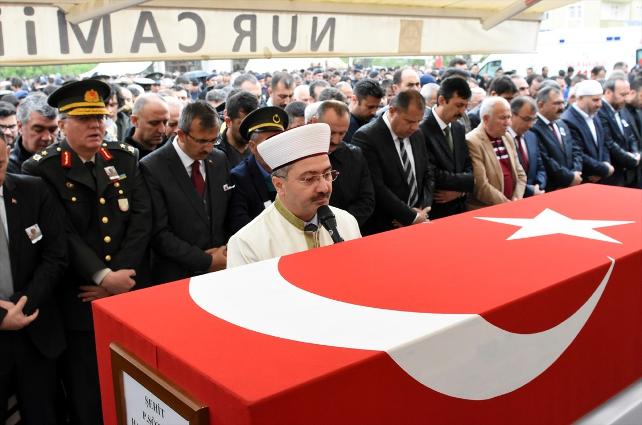 İl Müftüsü Şahin Yıldırım'ın kıldırdığı cenaze namazının ardından, protokol üyeleri ve vatandaşlar, şehidin Türk bayrağına sarılı tabutunu top arabasına kadar taşıdı.