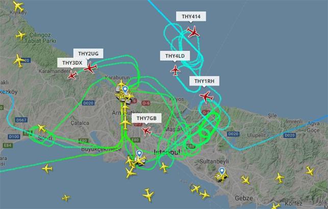 İstanbul Havalimanı'nda olumsuz hava koşulları nedeniyle çok sayıda uçak iniş yapamadı. Uçaklar havada tur atmak zorunda kaldı.