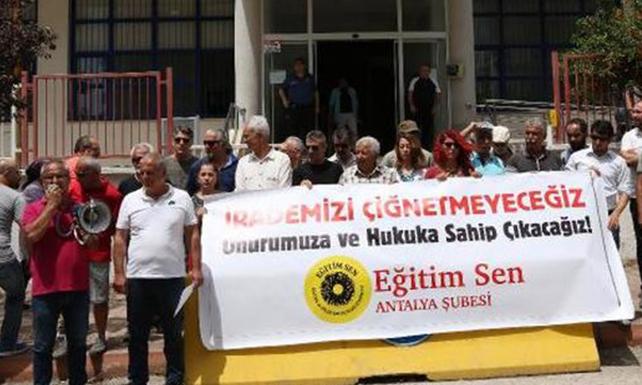 Eğitim-Sen Antalya Şubesi üyeleri, Konyaaltı Kaymakamlığı içinde bulunan Konyaaltı Milli Eğitim Müdürlüğü önünde basın açıklaması yaptı. Basın açıklamasını okuyan Şube Sekreteri Mustafa Vakit, 3 Mayıs'ta Şube Başkanı Kadir Öztürk, üye Hasan Taşkın ve sendikanın hukuksal temsilcisi avukat Nusret Gürgöz'ün, Taşkın hakkındaki hukuki bir durumu Konyaaltı İlçe Milli Eğitim Müdürü Yakup Hoplar ile makamda görüşmeye gittiğini söyledi. Ancak Hoplar'ın sendikanın temsilcilerine hakaret içeren sözler sarf ederek makamından kovma girişiminde bulunduğunu ileri süren Vakit, "Bu olayla ilgili hukuki süreç başlatıldığı gibi Konyaaltı İlçe Milli Eğitim Müdürü Yakup Hoplar'ın görevden alınması için her tür kampanya ve etkinlik düzenleyeceğimizi, valilik ve bakanlık düzeyinde de her tür girişimde bulunacağımızı kamuoyunun da kendisinin de bilmesini isteriz" dedi.