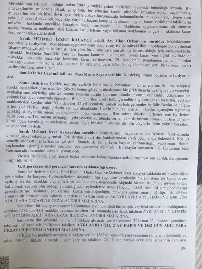 Sanıklar Bedirhan Çelik, Emil İbrahim Önder Uzel ve Mehmet İzzet Kalaycı hakkında hapis cezası çıktı. Sanıkların iyi halleri dikkate alınarak ayrı ayrı 4 yıl 2 ay hapis ve 1562 gün adli para cezasına çarptırılmaları kararı verildi.