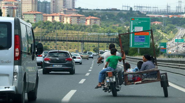 Sonradan eklenmiş olduğu anlaşılan sepette ise iki çocuk ön tarafta otururken, bir kadın da kucağında bir çocukla arka tarafta oturuyor.