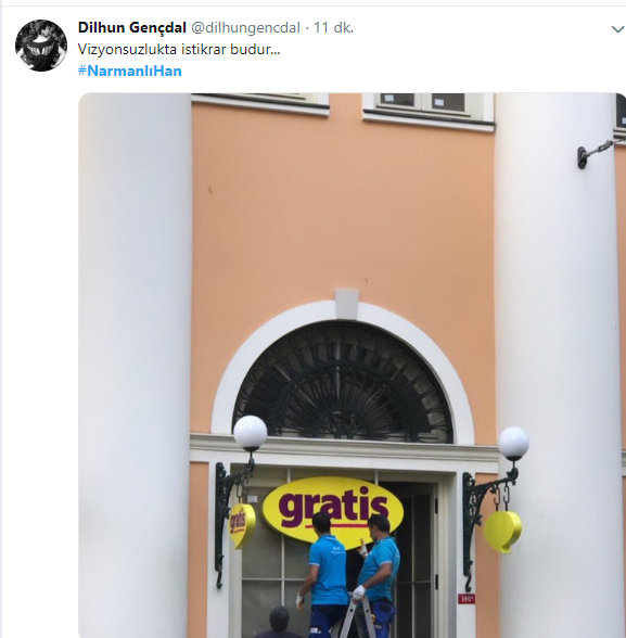 Tarihi Narmanlı Han’a bir kozmetik zinciri olan Gratis’in tabelası asıldı.