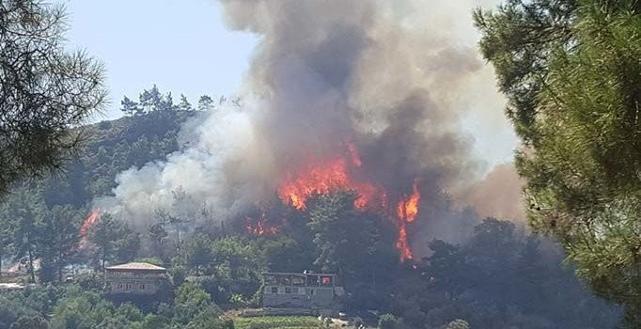 Yangına Orman Bölge Müdürlüğü’ne ait 20 arazöz ve 6 helikopterle müdahale ediliyor.