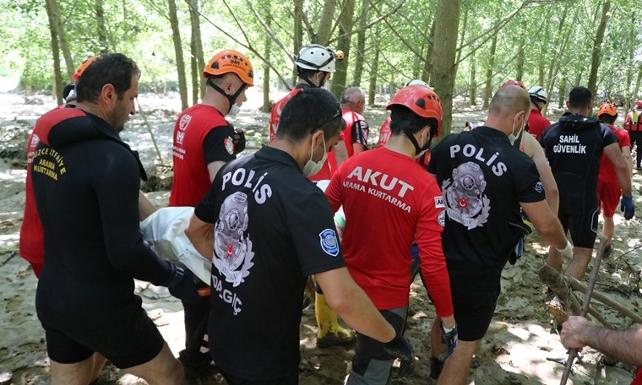 Yürütülen arama kurtarma çalışmalarında, önceki gün Akçakoca ilçesine bağlı Esmahanım ile Uğurlu köyleri arasındaki dere yatağında kayıp olarak aranan 42 yaşındaki Fatma Töngel'in cesedi bulunmuştu.