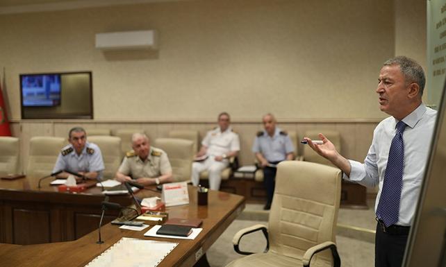 Bakan Akar’ın TSK'nin komuta kademesi ile bir araya geldiği toplantıda hem bu görüşmeler değerlendirildi hem de Fırat'ın doğusundaki terör hedeflerine yönelik olası askeri harekat masaya yatırıldı.