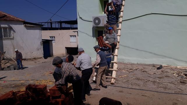 Aydın'ın gelenek ve göreneklerine en bağlı köylerinden biri olan Yenipazar Karacören Mahallesi'nde köyün camisi tadilata alındı. Hayırsever vatandaşların destekleri ile yenilenen caminin çatısını da yenileme kararı alan köylüler ellerinde avuçlarında ne varsa harcadı. Kiremitleri de alan köylüler kiremitlerin caminin çatısına taşınması için ciddi bir maliyetle karşılaşınca iş makinesi tutmak yerine kendi yöntemleri sorunu çözdü.