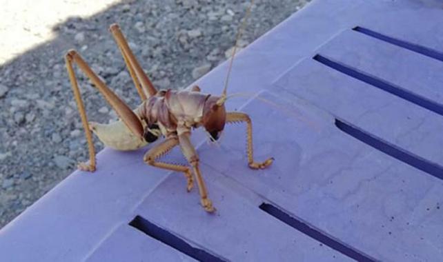 İlk kez böylesi büyüklükte çekirge gördüklerini belirten gezginler, çekirgenin fotoğrafını çekti. (Haber 7)