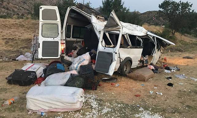 Kaza, Diyarbakır Bingöl karayolu Lice ilçesi abalı köyü mevkiinde meydana geldi. Edinilen bilgilere göre Diyarbakır’dan Karadeniz bölgesine fındık toplamak için mevsimlik işçileri taşıyan 21 BA 048 plakalı minibüs sürücüsünün direksiyon hakimiyetini kaybetmesi ile taklalar atarak devrildi.