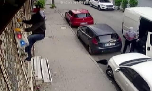 Yaklaşık 5 dakika süren hırsızlık işyerinin girişinde ve içinde bulunan güvenlik kameralarına saniye saniye yansıdı. Görüntülerde minibüs ile işyerinin önüne gelen şüpheliler, bir süre inceleme yaptıktan sonra demir kesme makasıyla işyerinin kilidini kesiyor. Sonrasında işyerine giren şüpheliler, çaldıkları kot pantolonları minibüse yüklüyor. Bu sırada işyerinin alarmının çalması üzerine bir kişi, kepenklere tırmanarak çalmaya başlayan alarmı yerinden sökerek parçalıyor. Hırsızlığa devam eden şüpheliler ile yoldan geçen bir vatandaş yüz yüze geliyor. Vatandaşa aldırış etmeyen şüpheliler, hırsızlığı tamamlayarak geldikleri minibüs ile olay yerinden kaçıyor.