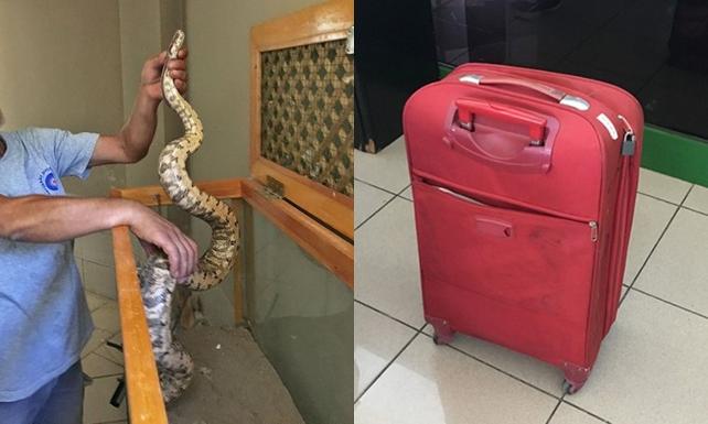 İzmir'den otobüsle Antalya'ya gelen yolcunun valizinde boa yılanı ele geçirildi.