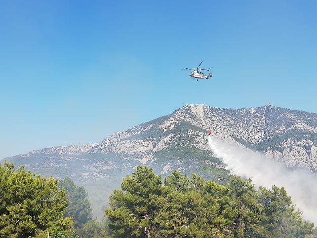 İhbar üzerine bölgeye çok sayıda yangın söndürme ekibi sevk edidi. 2 helikopter, 10 araröz ve 70 orman işçisi ile alevlere müdahale ediliyor.