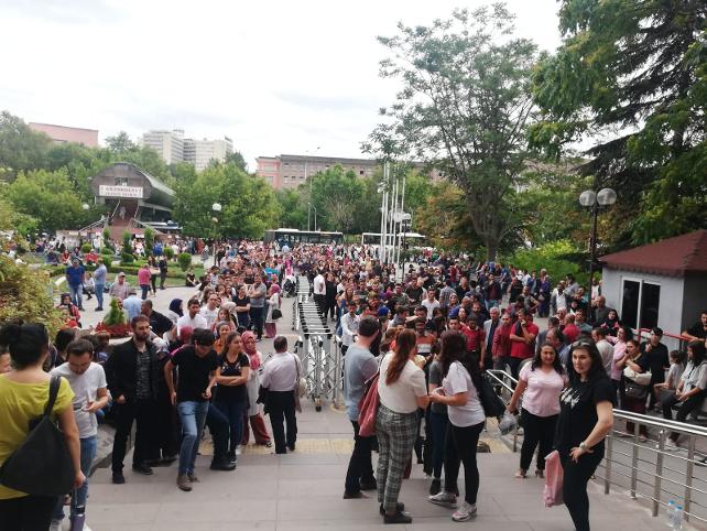 Ankara Adliyesi'nde bugün Sözleşmeli Zabıt Katibi ve Sözleşmeli İcra Katipliği klavye uygulama sınavı yapılıyor. Sınav için gelen adaylar, adliye önüne sığmadı. Adliyenin A kapısında oluşan sıra, adliye önünde S çizerek alan dışına taştı. Sıranın ucu, adliyenin etrafını dolaşarak C Kapısına kadar ulaştı.
