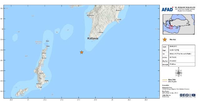 Afet ve Acil Durum Yönetimi Başkanlığı'nın (AFAD) verilene göre; Muğla açıklarında yerin 27 kilometre derinliğinde, 4,6 büyülüğünde bir deprem meydana geldi.